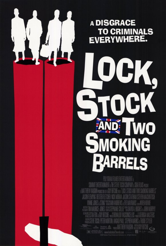 Lock, stock and two smoking barrels är en gangsterfilm av Guy Richie som likt alla andra filmer han har gjort innehåller många färgstarka skurkar. Däremot har jag inget minne av att filmen hade något som liknande filmaffischen i sig, men det kanske likt många andra filmer i den här listan – är ett sätt att ge associationer till gamla deckare och heist-filmer.
